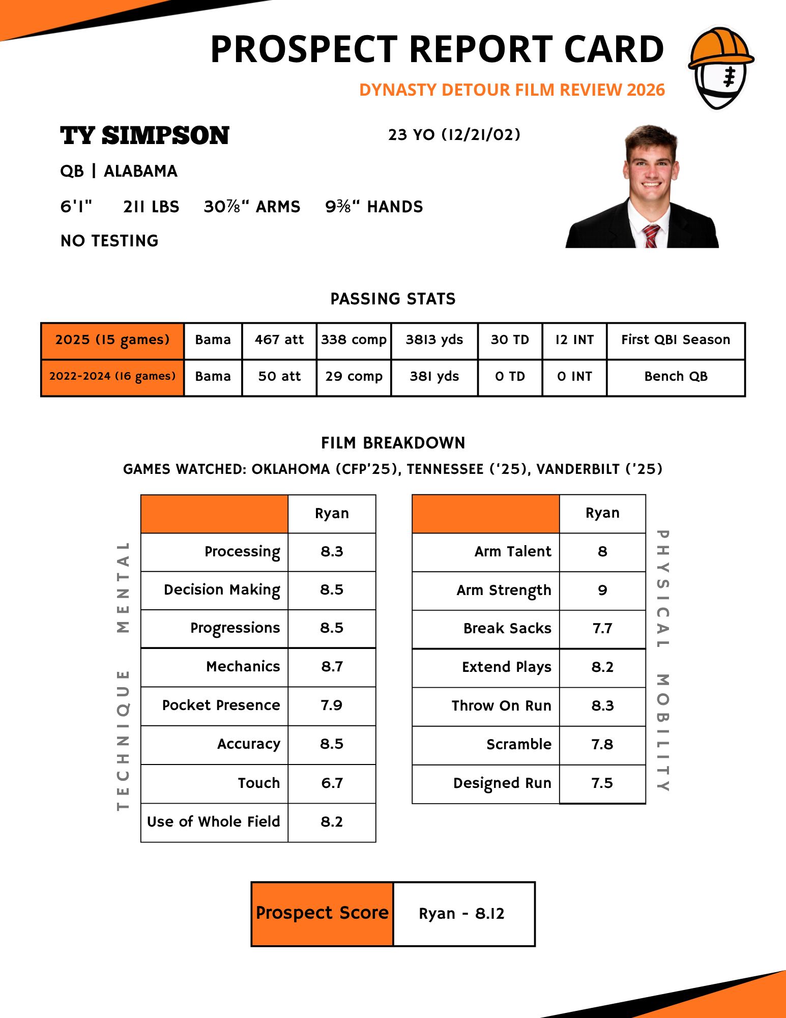 Let’s goooooooooo! Quarterback time is here, and it couldn’t come at a better time with Dan Orlovsky having whipped up some controversy with his recent comments on Ty Simpson being the class’ QB1. Now, him knocking Mendoza for not having played in any big games is kind of insane, but is Simpson really that legit? Time to break it down.